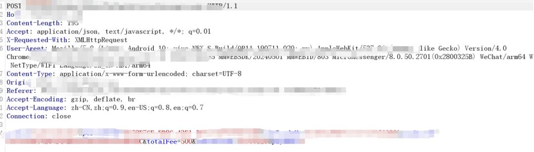 这个包就是调用微信支付api进行订单支付的数据包了,直接修改totalfee参数即可