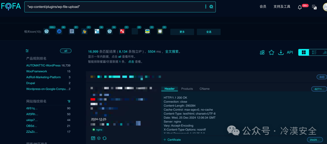 WordPress File Upload 插件,在 <= 4.24.11 版本前的 wfu_file_downloader.php 文件存在前台任意文件读取+任意文件删除漏洞,未经身份验证攻击者可通过该漏洞读取系统重要文件(如数据库配置文件、系统配置文件)、数据库配置文件等等,导致网站处于极度不安全状态。