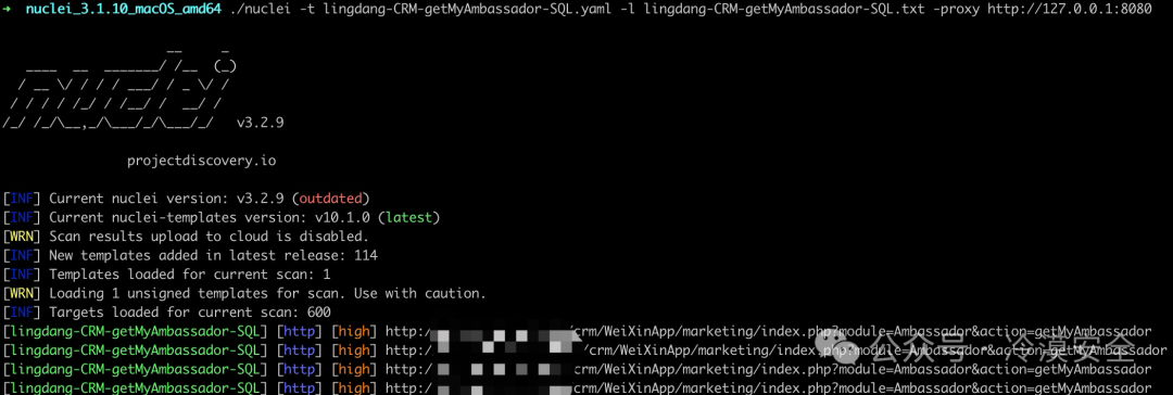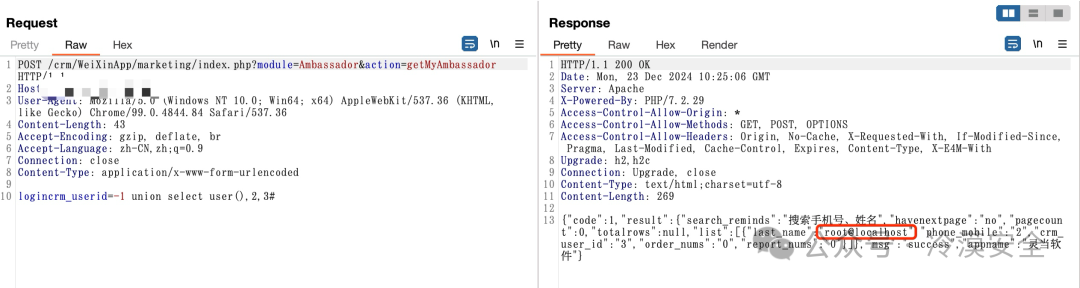 灵当CRM getMyAmbassador 接口存在SQL注入漏洞,未经身份验证的远程攻击者除了可以利用 SQL 注入漏洞获取数据库中的信息(例如,管理员后台密码、站点的用户个人信息)之外,甚至在高权限的情况可向服务器中写入木马,进一步获取服务器系统权限。
