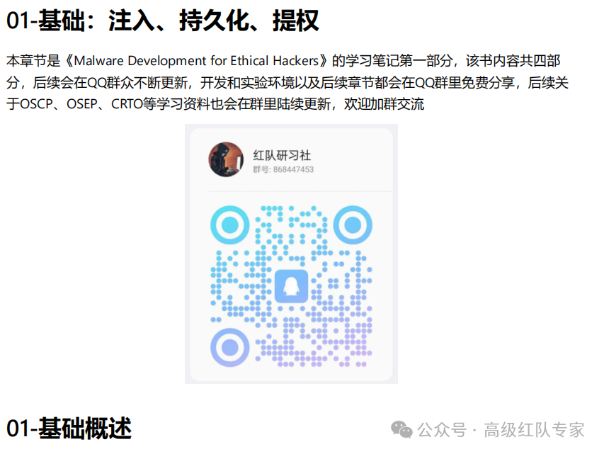 目前第一和第二部分笔记PDF文档已经上传到【红队研习社】QQ群