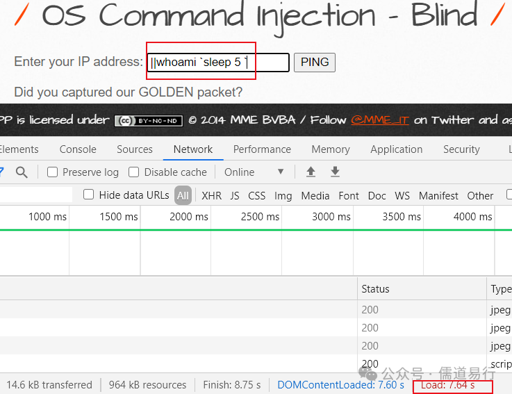 命令盲注就是注入后没有返回信息,要根据反应时间判断命令是否成功执行