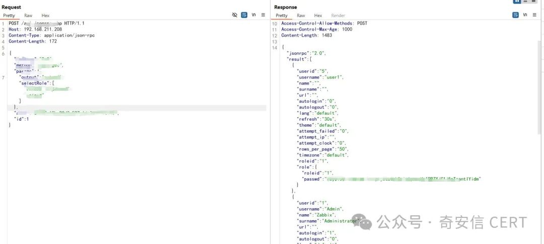 目前,奇安信威胁情报中心安全研究员已成功复现Zabbix SQL注入漏洞(CVE-2024-42327)****,截图如下: