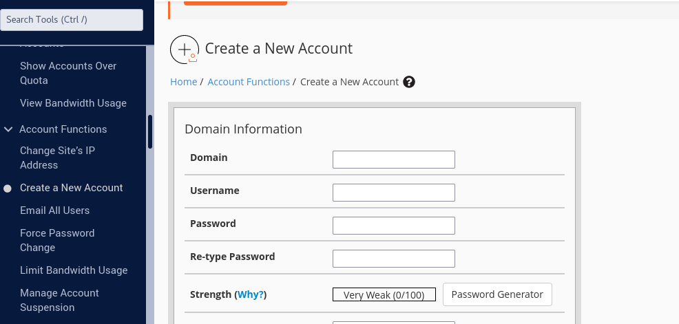 进入WHM,登录用户名root,口令为root用户的口令,选择创建用户,如下图