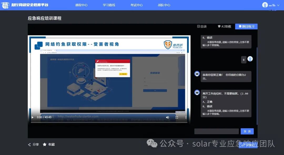 我司自主研发的知行网络安全教育平台结合多种培训方式的组合,灵活应对不同场景,确保每位员工具备扎实的网络安全意识与技能。