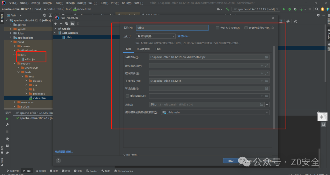 然后找到libs下ofbiz.jar,新增jar Application,添加指定的路径