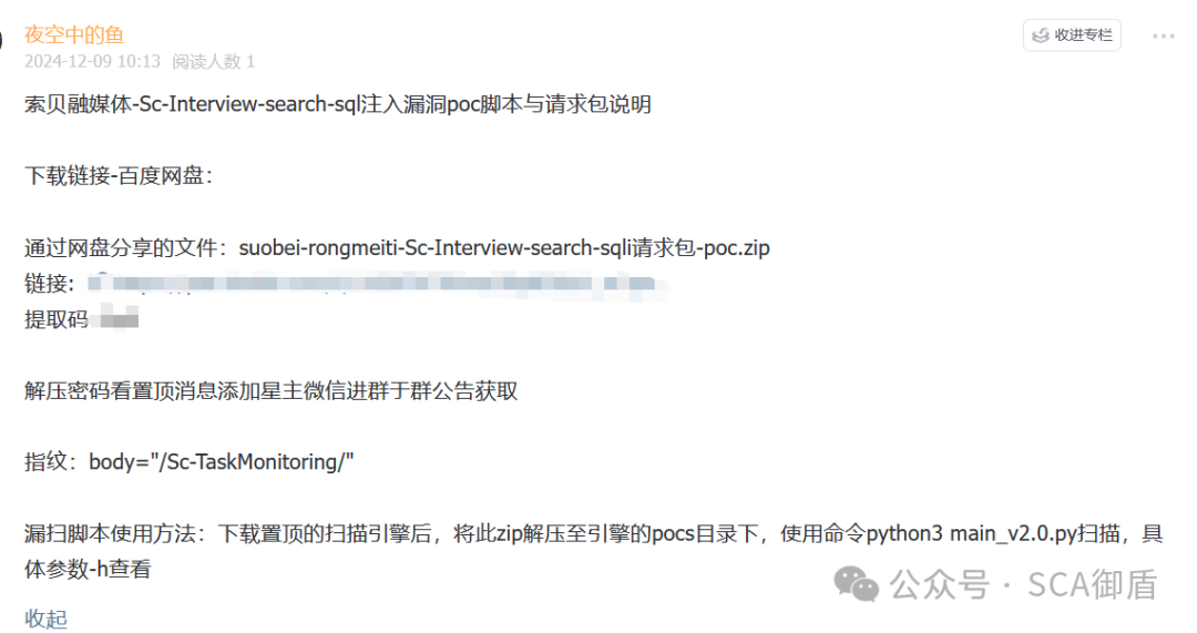 SCA御盾实验室的技术文章仅供参考,此文所提供的信息只为网络安全人员对自己所负责的网站、服务器等(包括但不限于)进行检测或维护参考,未经授权请勿利用文章中的技术资料对任何计算机系统进行入侵操作。利用此文所提供的信息而造成的直接或间接后果和损失,均由使用者本人负责。本文所提供的工具仅用于学习,禁止用于其他!!!