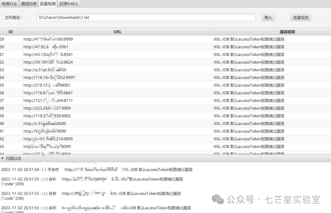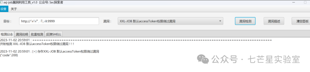 工具实现了XXL-JOB默认accessToken权限绕过漏洞的单个检测、批量检测、一键反弹shell功能,后续会持续更新优化,添加POC检测等