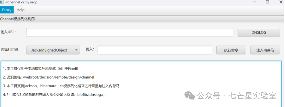 此工具是一款用于针对帆软BI反序列漏洞利用的工具,主要为安全评估人员提供安全测试便利,目前支持jackson、hibernate、cb反序列化链来进行利用