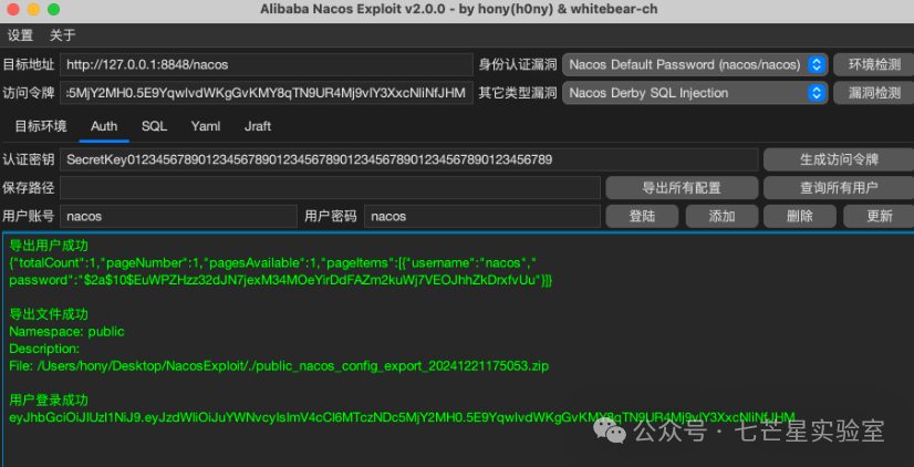 | YES | YES | Nacos Default Password (nacos/nacos) | AVD-2021-896025 |