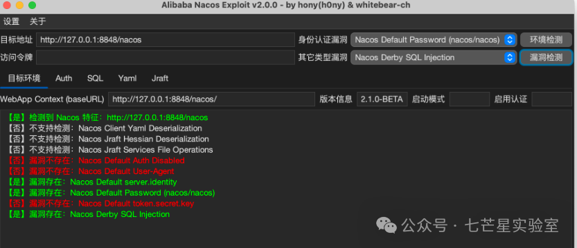 | YES | YES | Nacos Derby SQL Injection | AVD-2021-897468 |