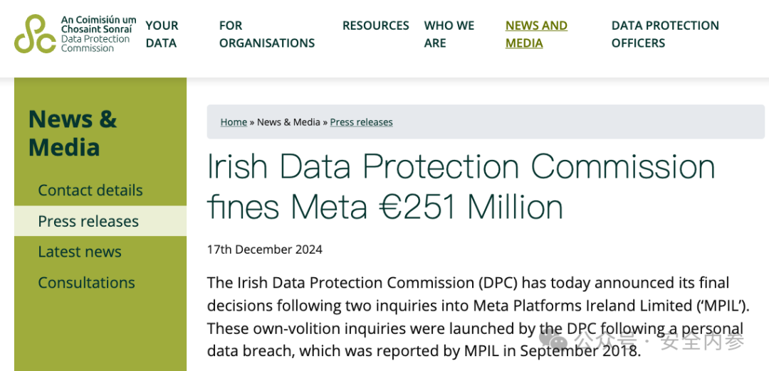12月17日,爱尔兰监管机构对2018年事件启动的两项调查做出了最终裁决:一项决定涉及Meta在安全事件发生后发布的违规通知,因GDPR要求及时、全面地报告重大安全事件;另一项决定涉及数据保护的设计和默认设置规则。在这两项调查中,DPC均认定Meta违反了GDPR。