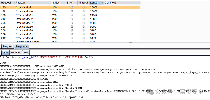 然后我在 /proc/self/fd/{number} 上运行入侵者,其中一个 fd 文件允许我访问访问日志