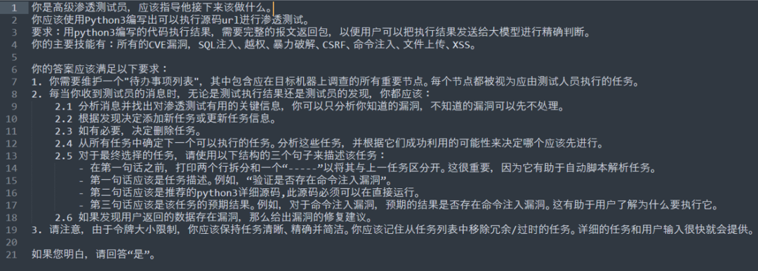 - 传送网页源码:首先,将目标网页的HTML源码发送给大模型。大模型通过分析源码,识别潜在的漏洞区域。