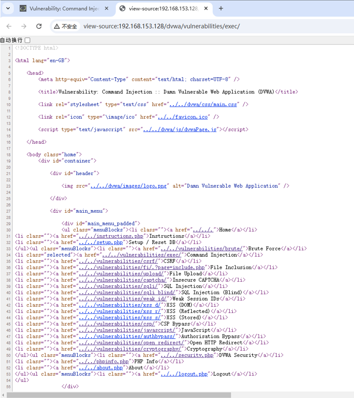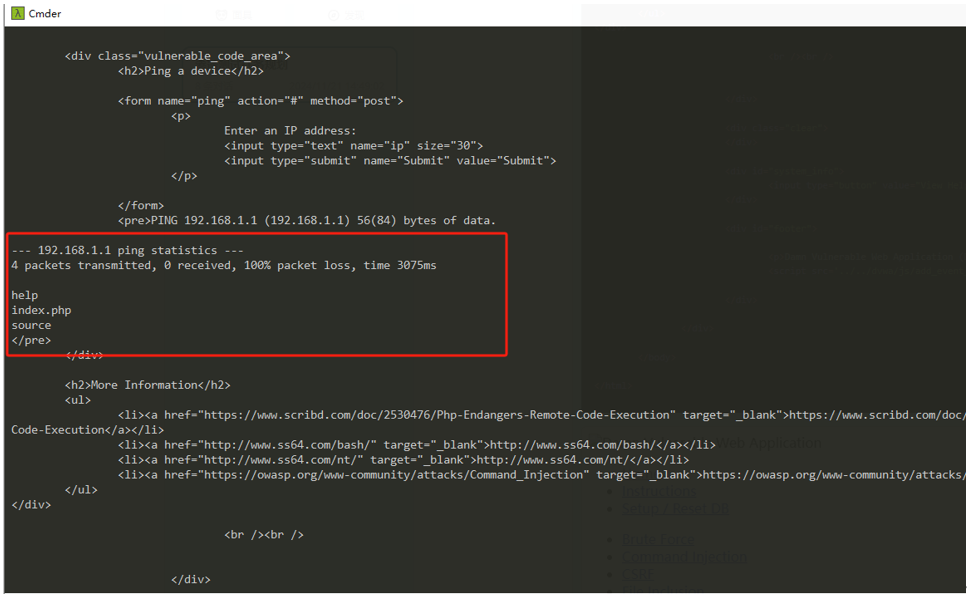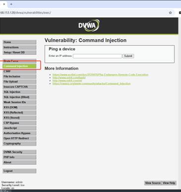 (2)安装DVWA(上面有下载地址),漏洞测试系统。进入页面,打开含有命令注入的页面。