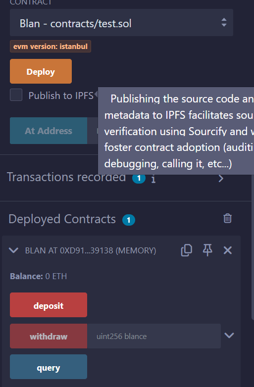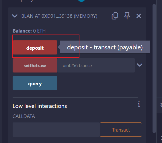 blan.deposit{value:1 ether}(); // 存入 1eth