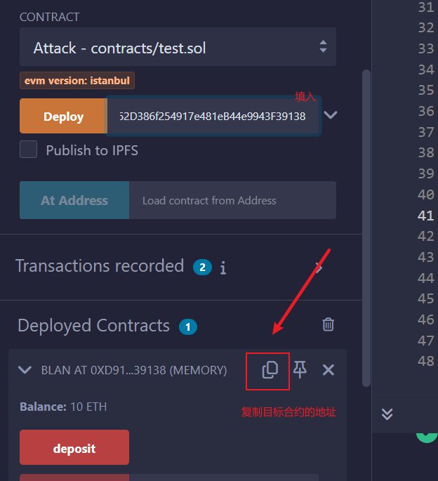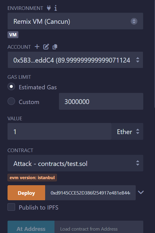 然后部署攻击合约