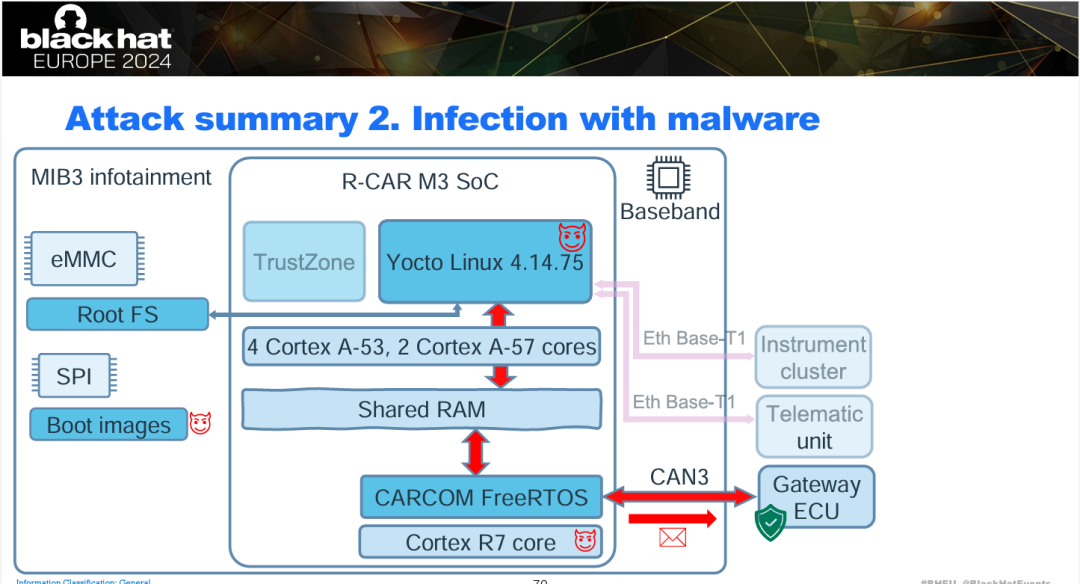 攻击者可以利用此漏洞实时访问 GPS 数据、访问联系人列表、监控速度、记录车内对话、播放声音以及捕获信息娱乐屏幕截图。