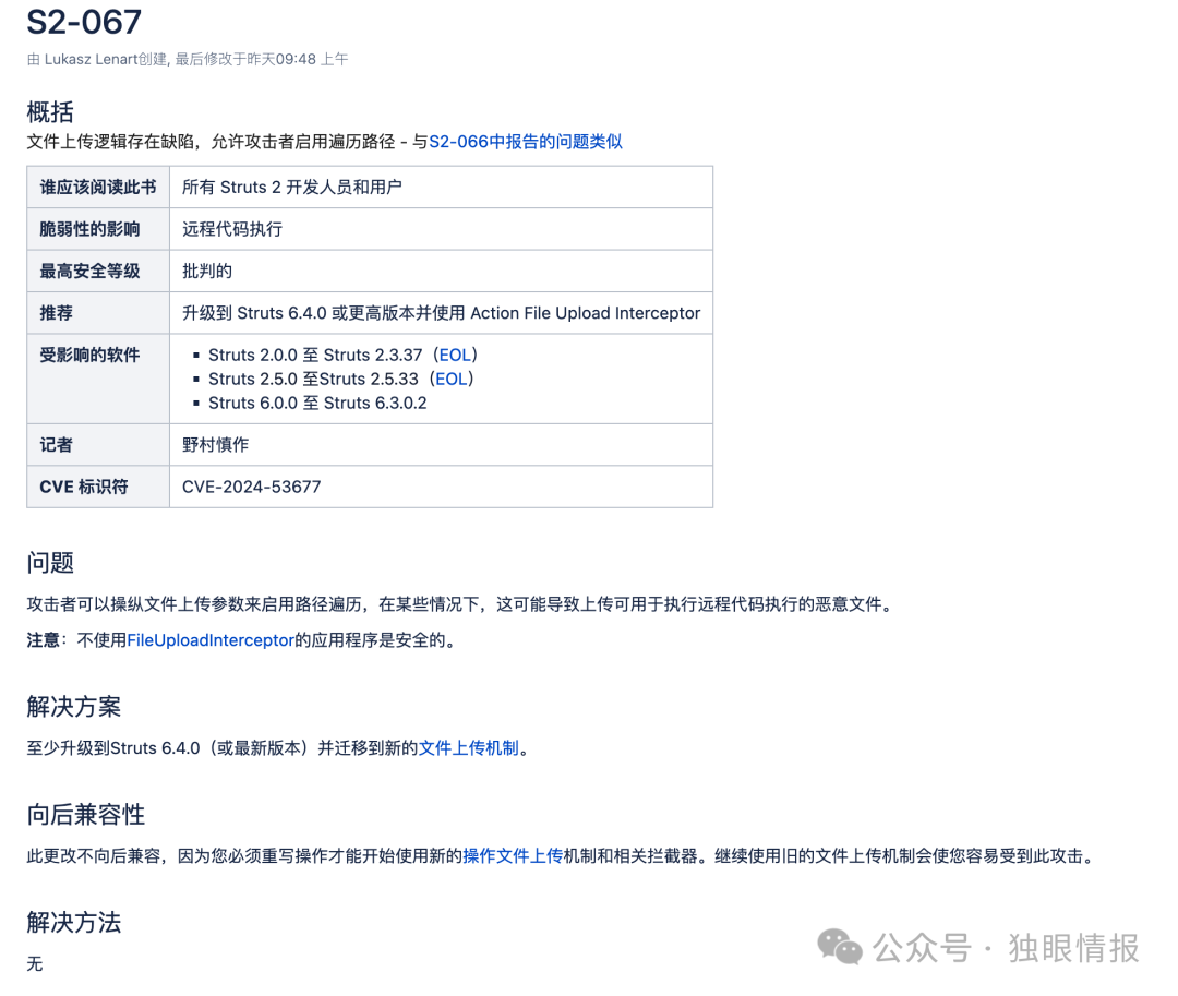 “漏洞 CVE-2024-53677 似乎与 CVE-2023-50164 有关。旧漏洞类似,补丁不完整可能导致新问题。” Ullrich 写道。“PoC 漏洞已经发布(例如,参见[2])。而且,我们看到针对此漏洞的主动利用尝试与 PoC 漏洞代码相匹配。”