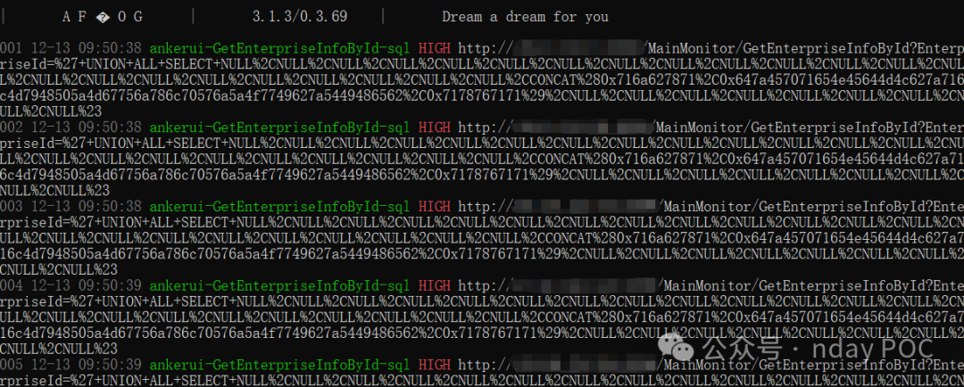 安科瑞环保用电监管云平台 GetEnterpriseInfoById 接口存在SQL注入漏洞,未经身份验证的远程攻击者除了可以利用 SQL 注入漏洞获取数据库中的信息(例如,管理员后台密码、站点的用户个人信息)之外,甚至在高权限的情况可向服务器中写入木马,进一步获取服务器系统权限。