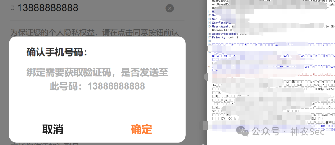 经过测试,如果用自己的手机号会显示未绑定账户,但只要把数据包里的手机号替换一下就会显示发送验证码。