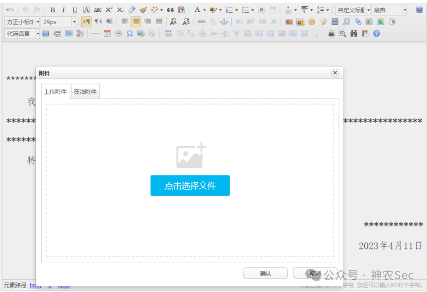但是没办法直接访问,这里找到的思路是该系统肯定有上传过附件或者图片,所以去找存在的图片,就能知道完整的路径。