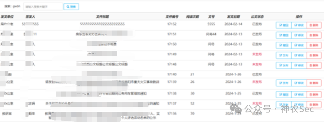 首先在公文查看处可以查看已发布和未发布的公文,然后选其中一篇点击修改