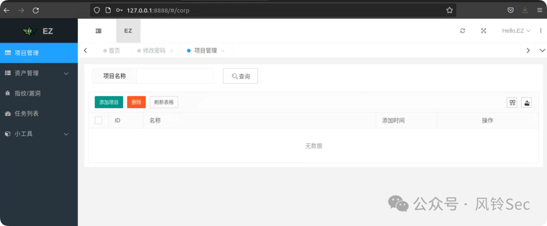 ,首次登录需要用户自行更改密码,修改密码后即可添加漏扫项目。