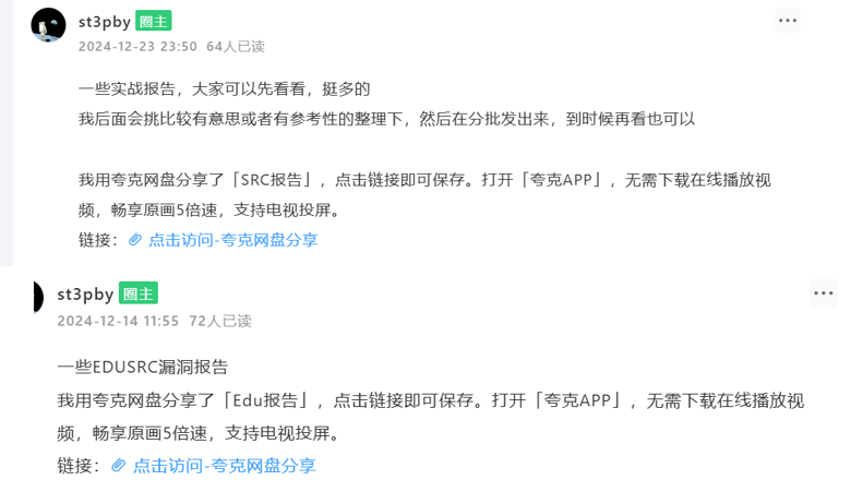 src专项圈子,内容包含src漏洞知识库、src挖掘技巧、src视频教程等,一起学习赚赏金技巧,以及专属微信群一起挖洞