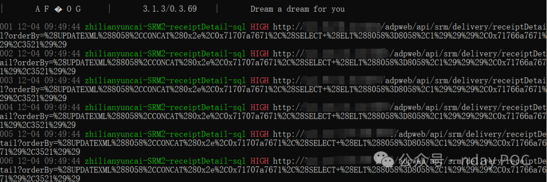 由于智联云采 SRM2.0 receiptDetail 接口可未授权执行SQL语句,存在极大的安全风险,未经身份验证的远程攻击者除了可以利用 此漏洞获取数据库中的信息(例如,管理员后台密码、站点的用户个人信息)之外,甚至在高权限的情况可向服务器中写入木马,进一步获取服务器系统权限。