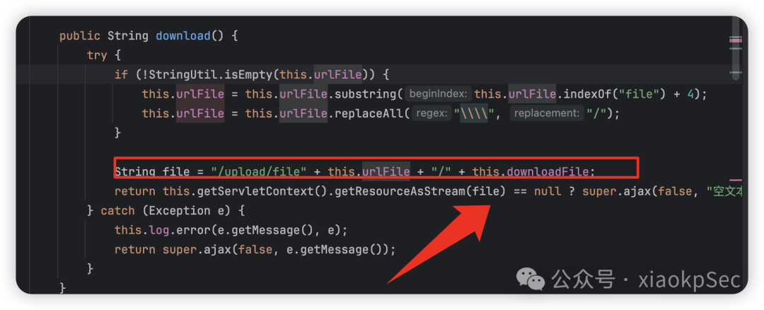 通过获取请求中的userFile和downloadFile参数,直接拼接读取组合后文件路径内容