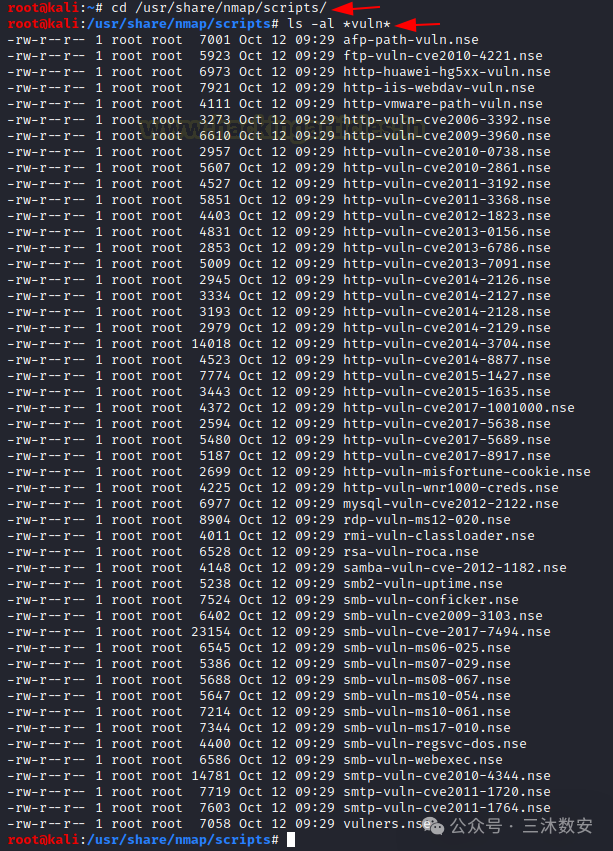 那么,让我们开始列出所有可用于发现漏洞的脚本。在这里我们看到了可用于检测漏洞的脚本列表。我们将逐一运行这些脚本并检查漏洞。