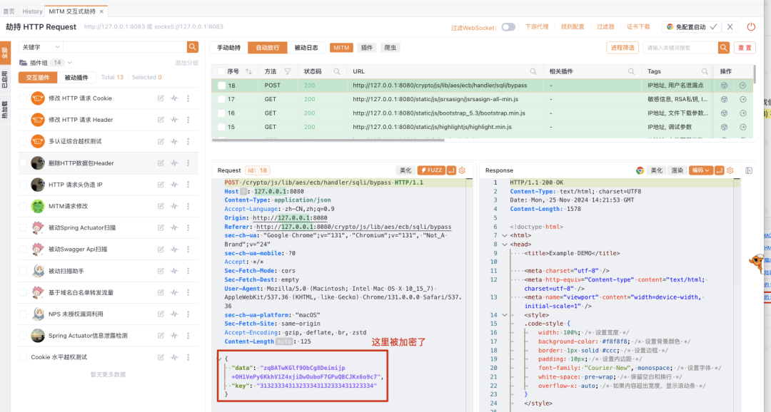 afterRequest 直接使用我们的加密解密函数,这样就可以直接得到如下效果: