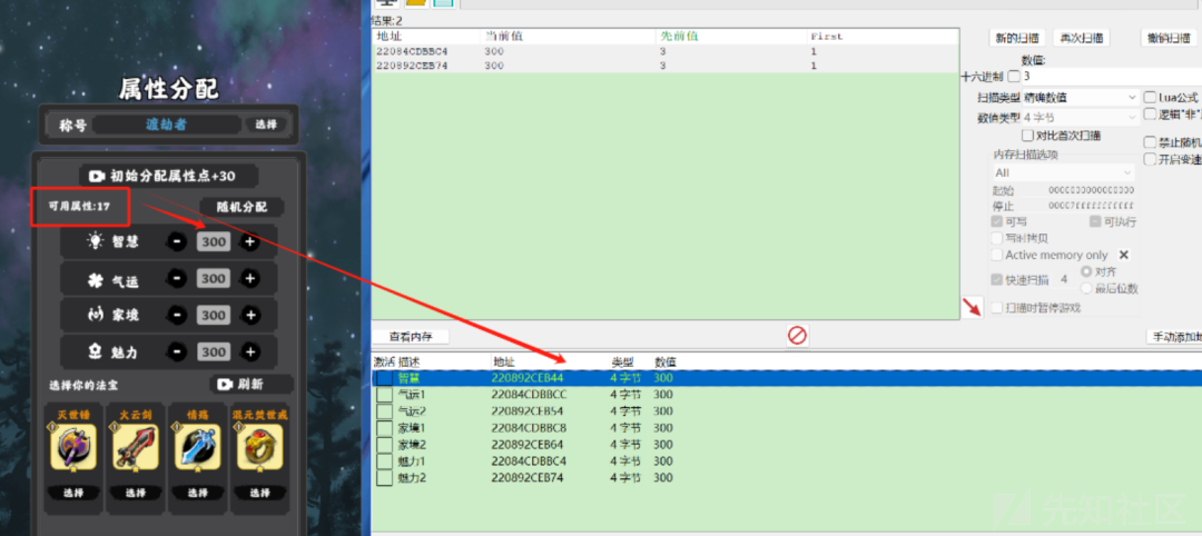因为这些数据,在游戏启动后,会被分配给一个固定的内存位置,所以,我们可以通过数值的变化,定位到该数值在内存中的地址。