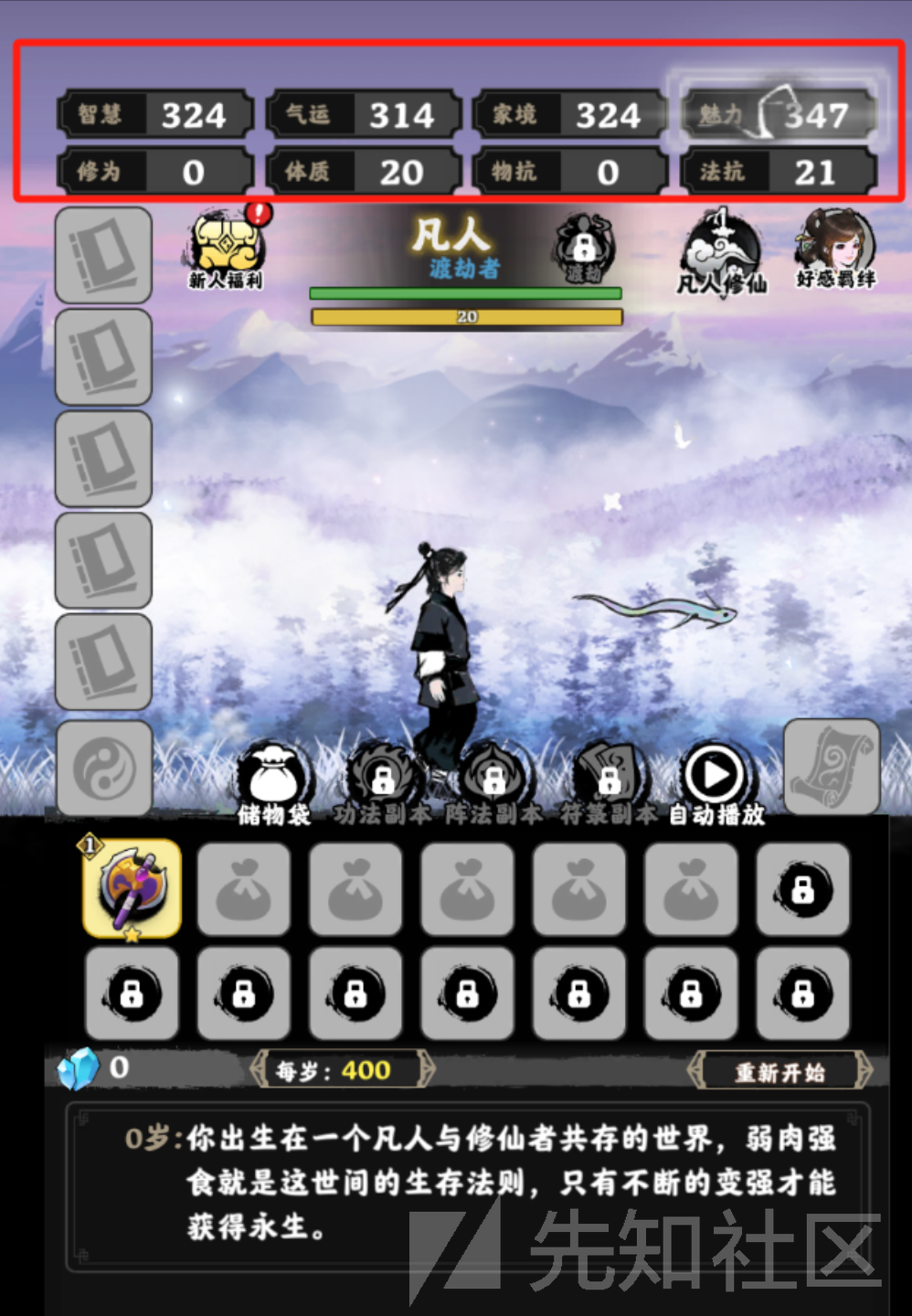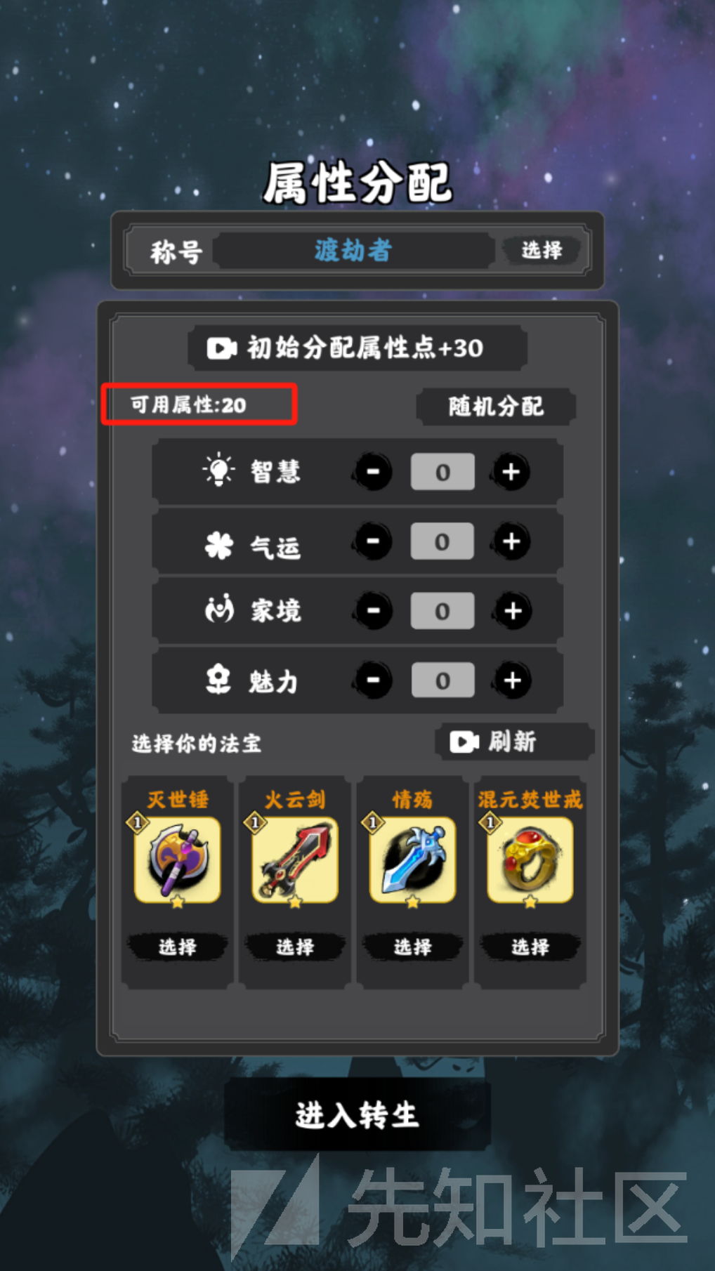 该游戏特性,初始会有属性点分配,多次更改从而定位到四个属性: