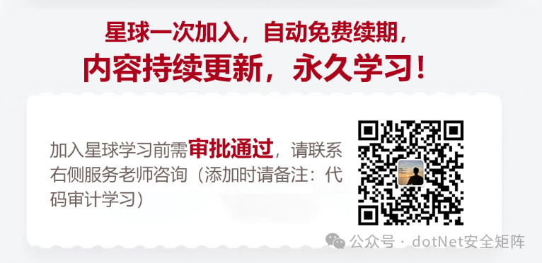 欢迎对.NET代码审计关注和关心的同学加入我们 [dot.Net安全代码审计] ,