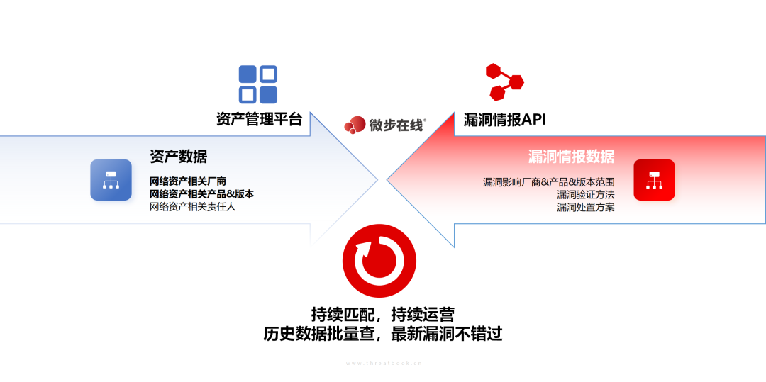 通过微步漏洞情报的自动化资产漏洞匹配(微步下一代威胁情报平台NGTIP、X情报社区及微步威胁情报检测与分析API均支持),能够帮助企业实现: