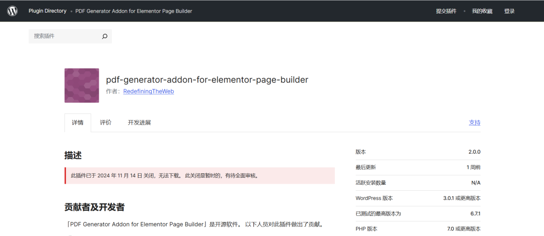 WordPress Elementor页面生成器插件PDF生成器是一个专为WordPress网站设计的插件,特别适配Elementor页面构建器,旨在为用户提供PDF生成功能。