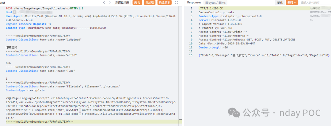 电子资料管理系统 /Menu/ImageManger/ImageUpload.ashx 接口存在文件上传漏洞,未经身份验证的攻击者可通过该漏洞在服务器端任意执行代码,写入后门,获取服务器权限,进而控制整个 web 服务器。