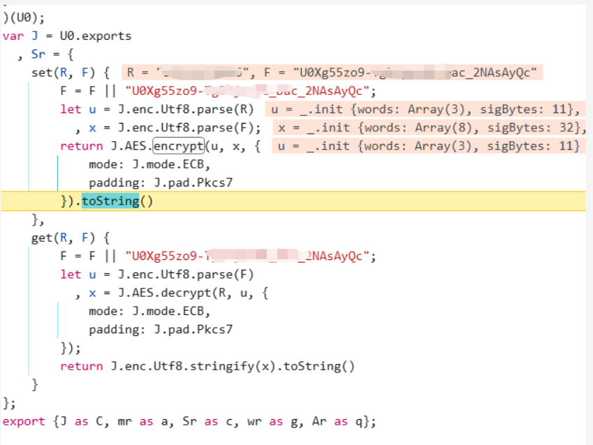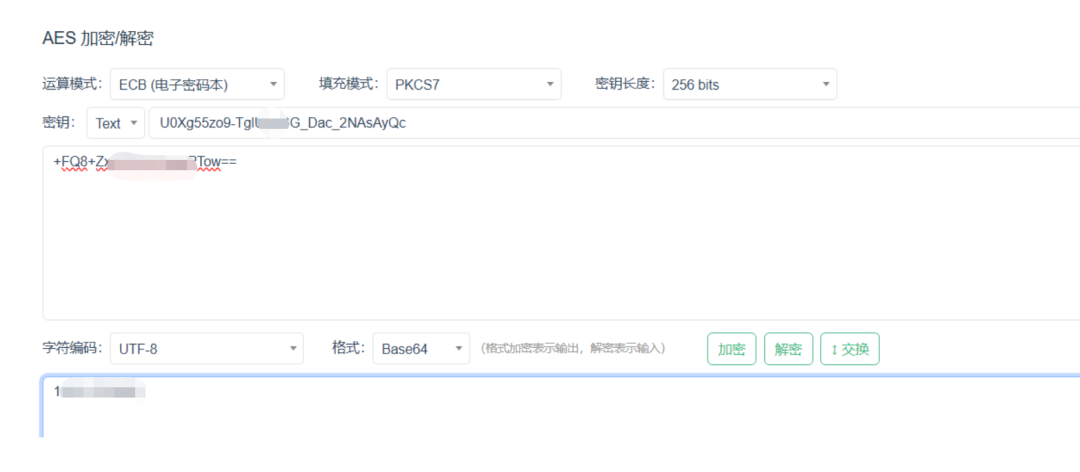 通过断点逆向找出加密方式及密钥 AES-ECB加密 U0Xg55zo9-TglUjxvBG_Dac_2NAsAyQc 尝试加密手机号判断密钥是否正确可用