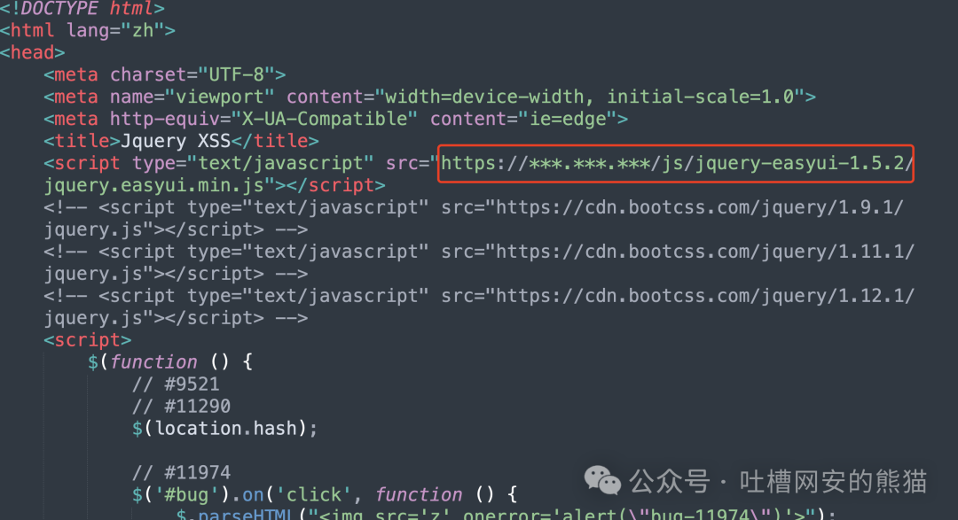 poc中填写目标站点的JQueryjs地址,如图所示: