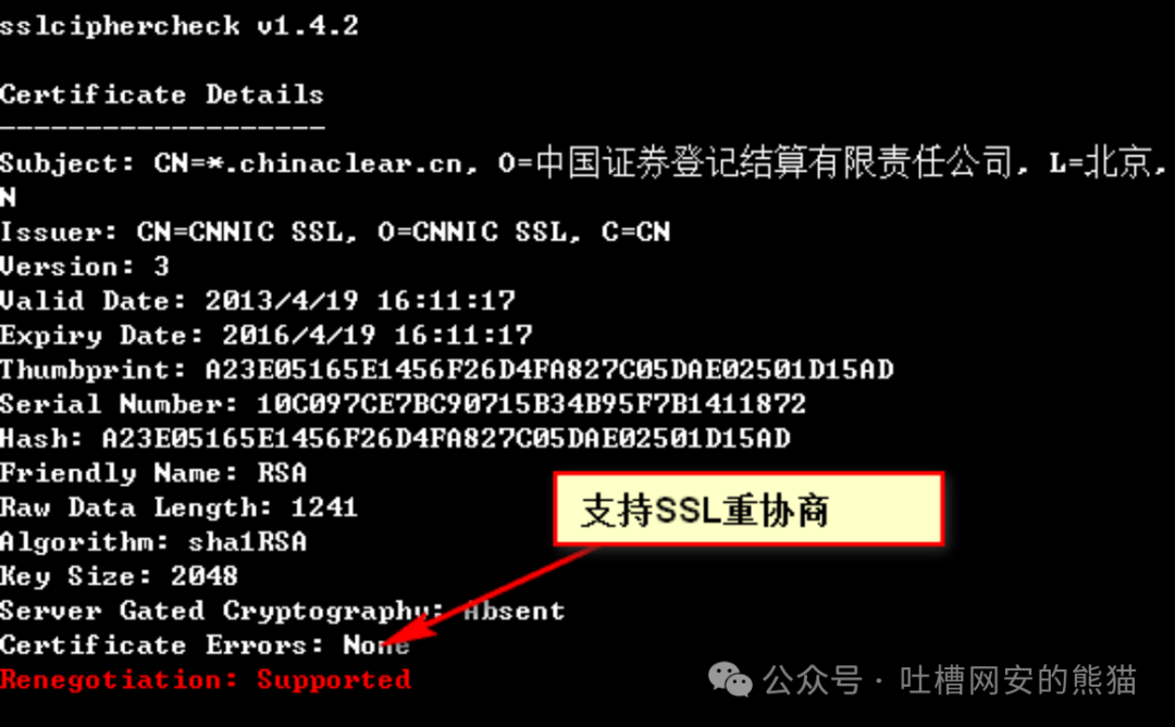 通过加密算法检测工具sslciphercheck,与网站系统进行加密算法枚举通信,探测系统存在的加密算法情况(工具下载链接如下)。