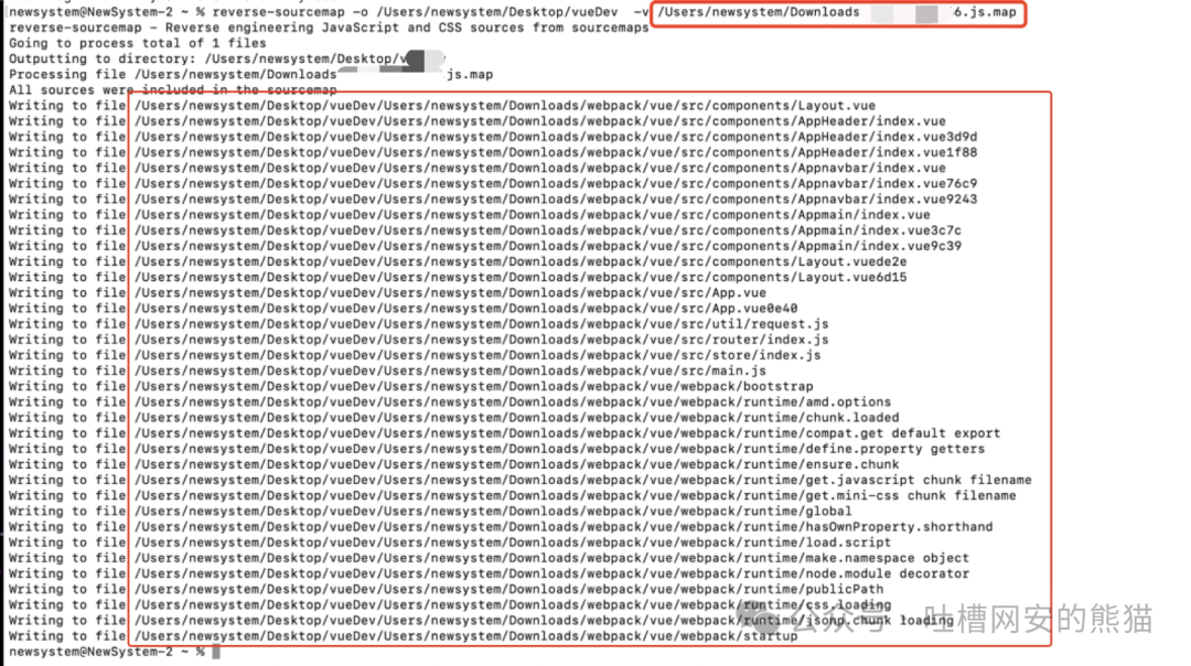 reverse-sourcemap -o /存放逆向出源码的目录 -v /.map文件所在的目录