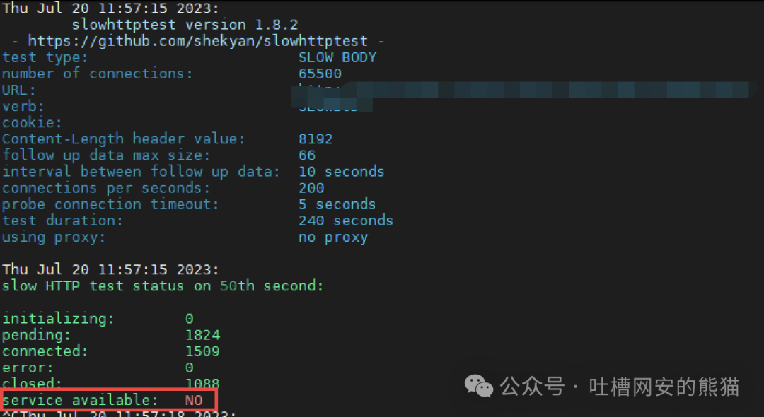 当显示为NO,则表示存在HTTP慢速攻击漏洞,可导致拒绝服务。