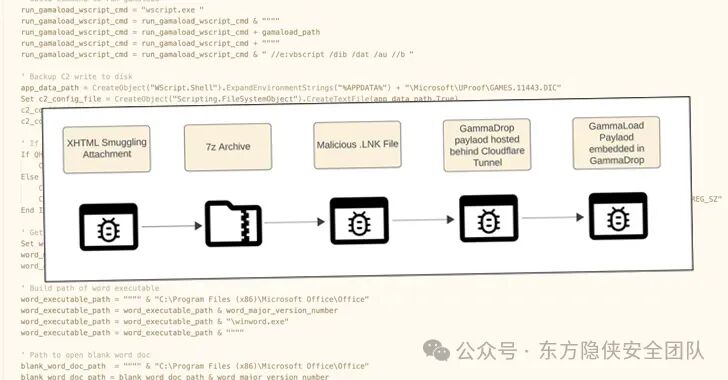 Recorded Future 强调的最新一轮攻击包括发送带有 HTML 附件的钓鱼邮件,这些附件利用 HTML 走私技术通过嵌入的 JavaScript 代码激活感染过程。当 HTML 附件被打开时,会释放一个 7 – Zip 压缩文件(“56 – 27 – 11875.rar”),其中包含一个恶意 LNK 文件,该文件利用 mshta.exe 来传递 GammaDrop,这是一个负责将名为 GammaLoad 的自定义加载器写入磁盘的 HTA 释放器,随后 GammaLoad 与 C2 服务器建立联系以获取更多恶意软件。GammaDrop 文件从位于 amsterdam – sheet – veteran – aka.trycloudflare [.] com 域名上的 Cloudflare 隧道后的中转服务器获取。GammaLoad 在传统 DNS 失效时利用谷歌和 Cloudflare 等 DNS – over – HTTPS(DoH)提供商来解析 C2 基础设施。如果首次与服务器通信失败,它还会采用快速变换 DNS 技术来获取 C2 地址。