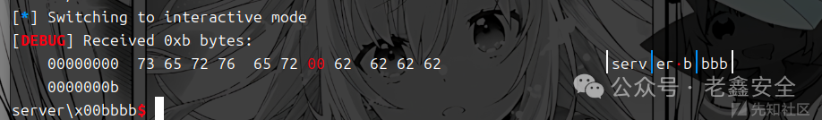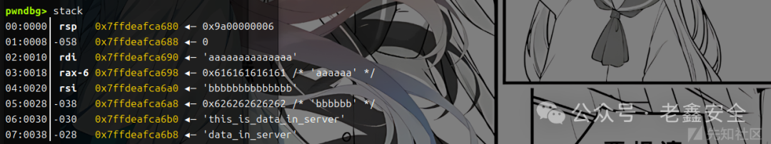 可以看到正常读入是这个样子,此时我们需要泄露的this_is_data_in_server有22字节,按照我们上面的分析如果全是注释没闭合那么,就会把this读入到xxx90的位置,rsi是我们wirite的地址,也就是读出末尾的server